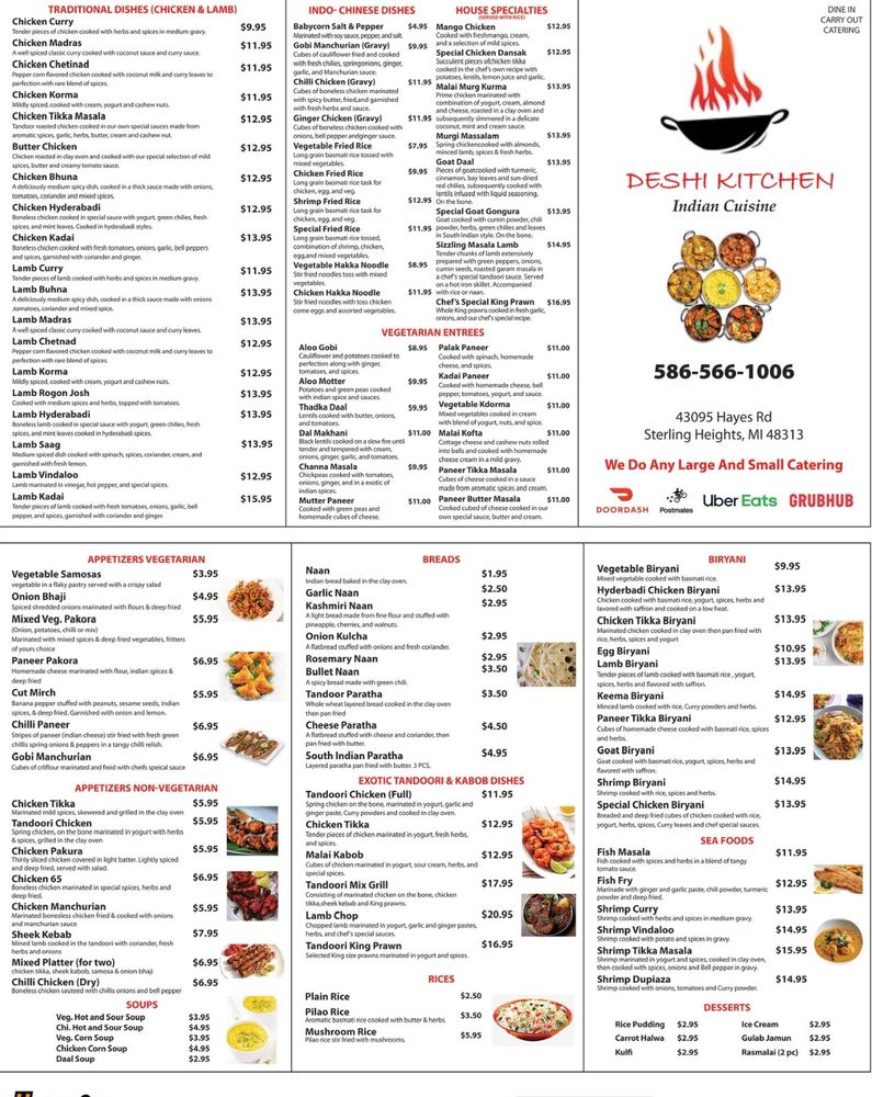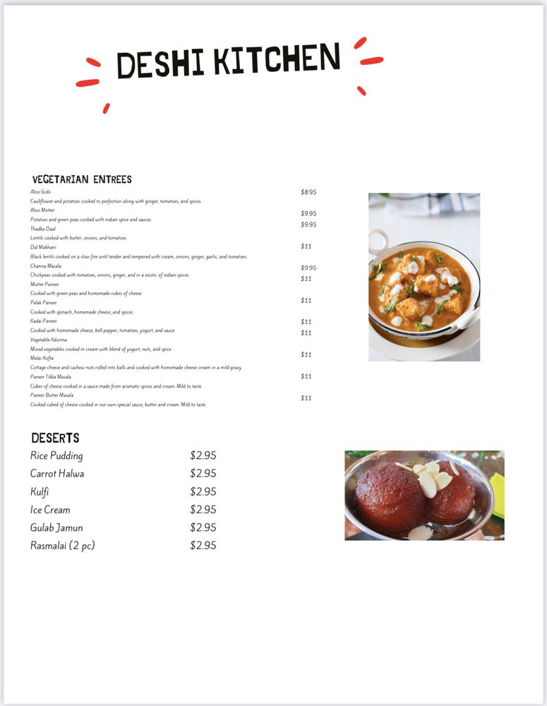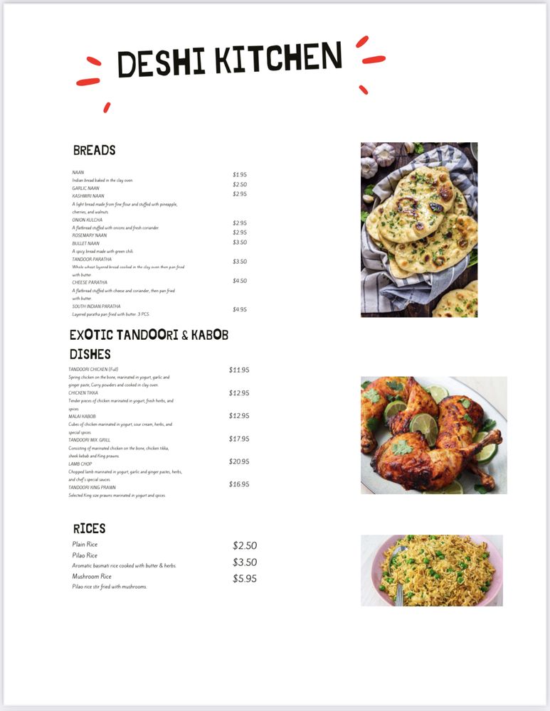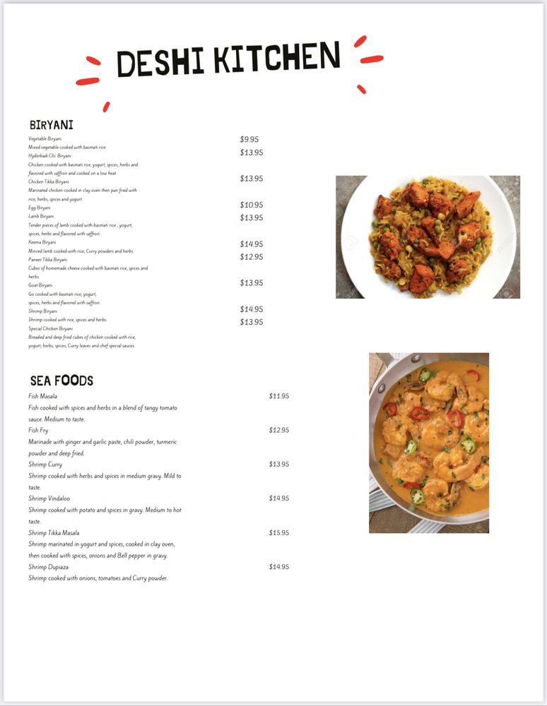 Deshi Kitchen Indian Cuisine Menu